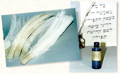 | Les passages de Torah sont soigneusement écrits à la main par un sofer (scribe).Sofer vient du mot "compter" en hebreu parce qu'il compte les lettres de la thora. Un sofer doit être encore plus craignant de D... qu'un abateur (shochet) - parce qu'un shochet qui commet une erreur nous fais transgresser un commandement négatif sur un animal seulement, pendant qu'un sofer qui commet une erreur nous empêche de remplir le commandement positif de la pose des Tefillins chaque jour et à cause de lui le non de D... sera prononcer en vain (en bénissant sur des tefillins qui ne sont pas cachères). Afin de devenir un bon sofer, on doit s'entraîner beucoup à la pratique de l'ecriture mais aussi à la préparation de la plume d'oie et du parchemin. Il doit parfaitement maîtrisé les halachot (les lois) de "Stam" (l'écriture des rouleaux de Torah,des Tefillin et des Mezouzots). Il est important qu'une telle expertise soit d'abord approuvee par une autorité Rabbinique.