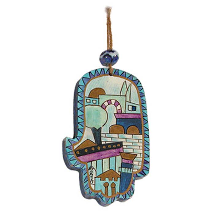 חמסה עץ קטנה מצוירת- ירושלים כחול HAS-4