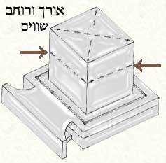 מידות בית התפילין חייבות להיות שוות באורך וברוחב, ואורך האלכסון חייב להיות שווה למידות האורך והרוחב בתוספת 2/5 על מידות האורך והרוחב . | ||||||||||||||||||||||||